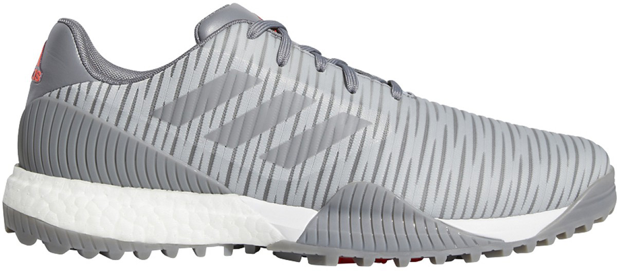 Adidas CodeChaos Sport Spikeless Golf Shoes - ON SALE - Grey two with grey three and solar red accents