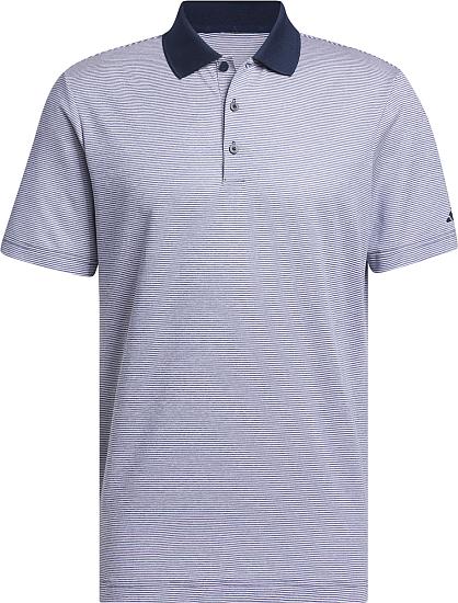 Adidas Ottoman Golf Shirts are constructed with 93% Recycled Polyester, 7% Spandex, three-button placket, knit collar, and a two-color textured stripe design.