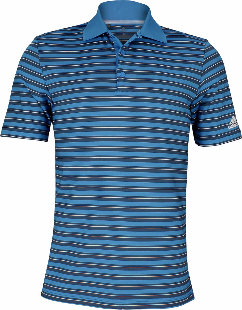 Adidas Ultimate 3-Color Stripe Golf Shirts feature moisture wicking fabric and reinforced edge-stitched seams for unbeatable durability.