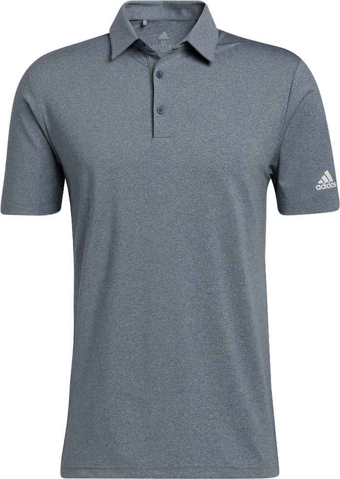 Adidas Ultimate 365 Heather Golf Shirts are designed with a 3-button placket, a self collar, and the Adidas brandmark logo on the left sleeve.