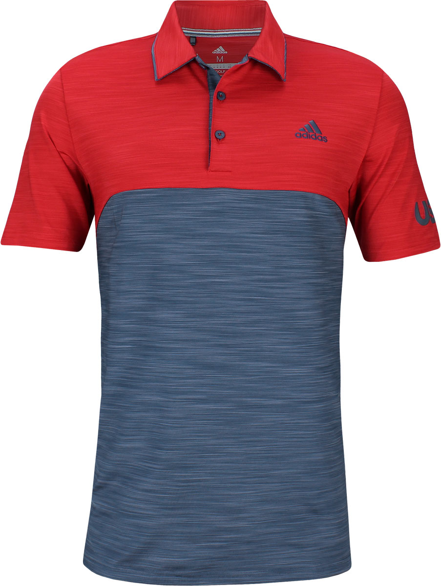 Specs for Adidas Ultimate 365 USA Heather Blocked Golf Shirts - Scarlet Red