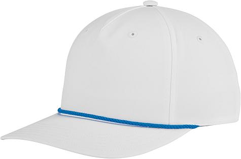 These Adidas golf hats are constructed with 97% Recycled Polyester and 3% Spandex, moisture-wicking sweatband, a five-panel design, and a blank face with subtle rope detailing.