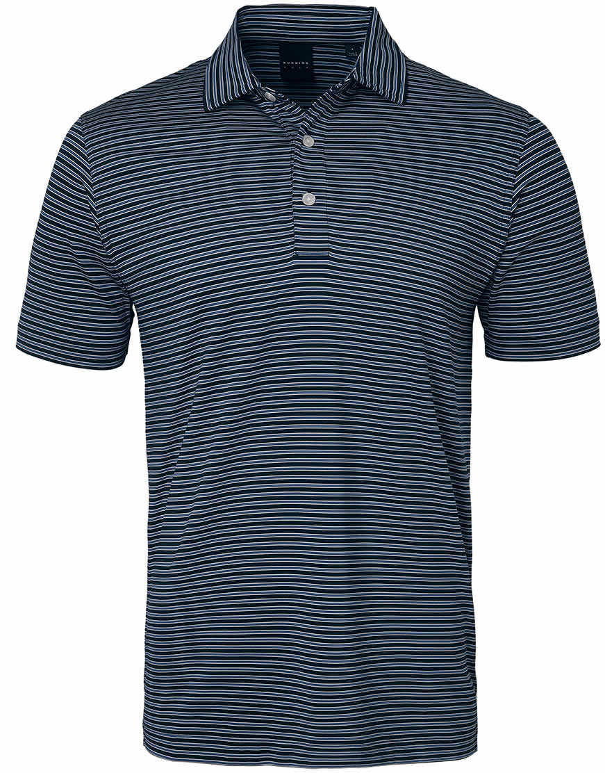 Dunning Sable Jersey Golf Shirts feature moisture wicking fabric and a stripe design for classic golf style.