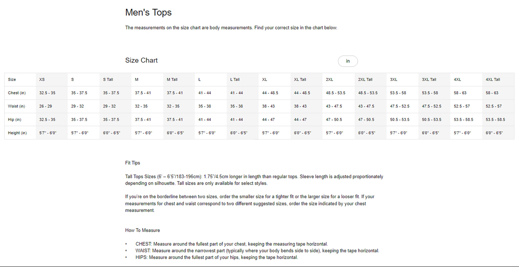 Nike Men's Apparel Sizing Guide