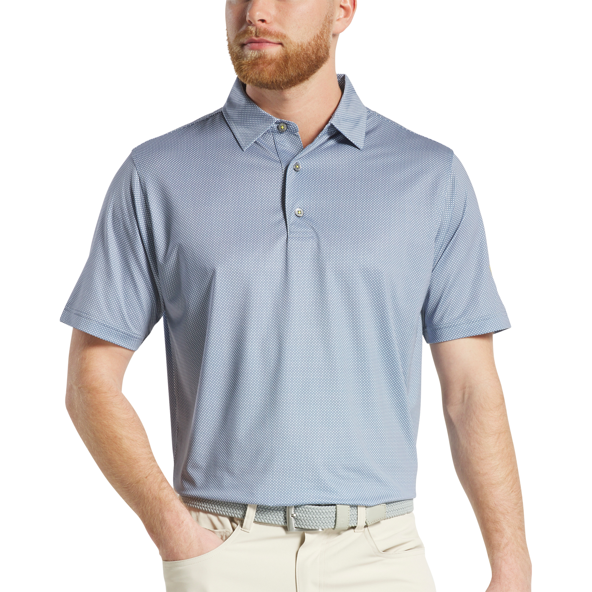 These FootJoy golf shirts are designed with a 3-button placket, a tonal ocatgon print, and a self collar.