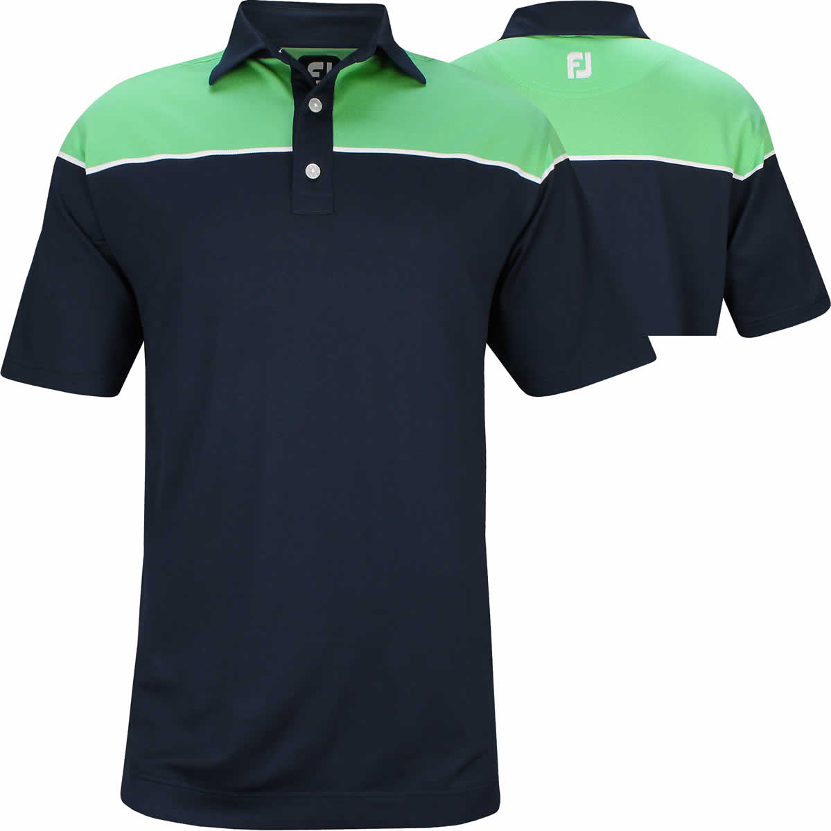 These FootJoy golf shirts feature a 3-button placket and the FJ logo embroidered on the back neck yoke.