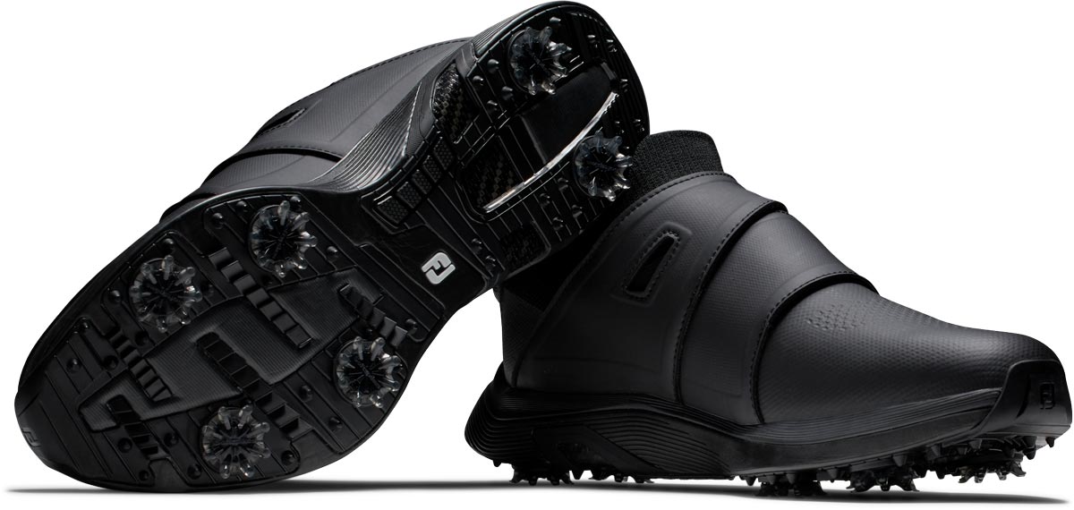 The new custom molded carbon fiber plate and design maximizes stability and torsional flex increasing ground leverage and contact. By wrapping the carbon plate around the FTF+ midsole it addeds targeted stiffness realized through your swing without sacrificing comfort for the walk between shots.