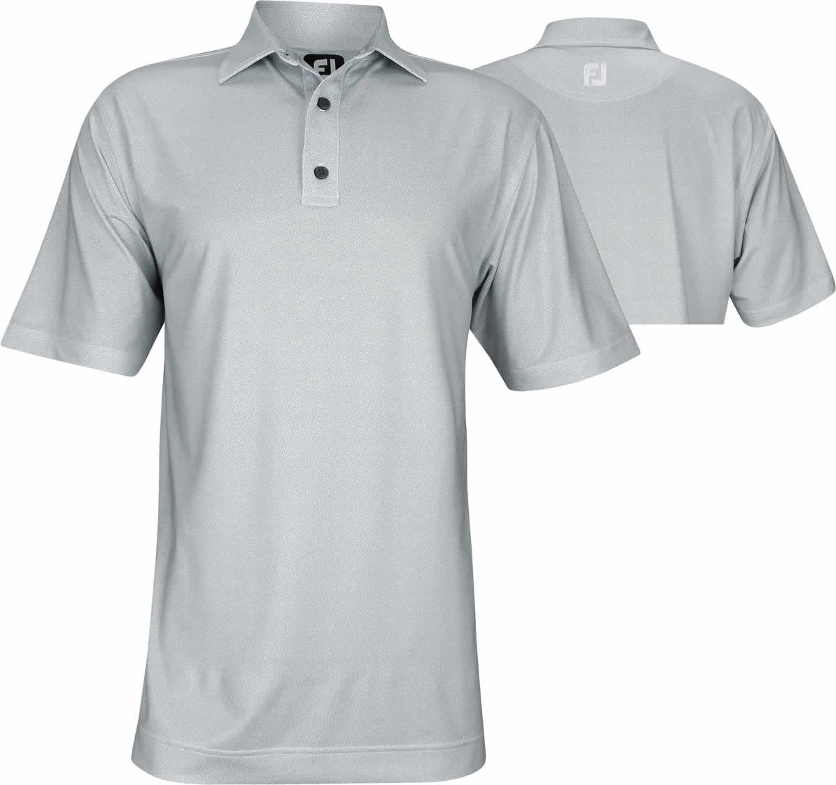 Specs for FootJoy Lisle Granite Print Golf Shirts with Self Collar - Grey and White - FJ Tour Logo Available