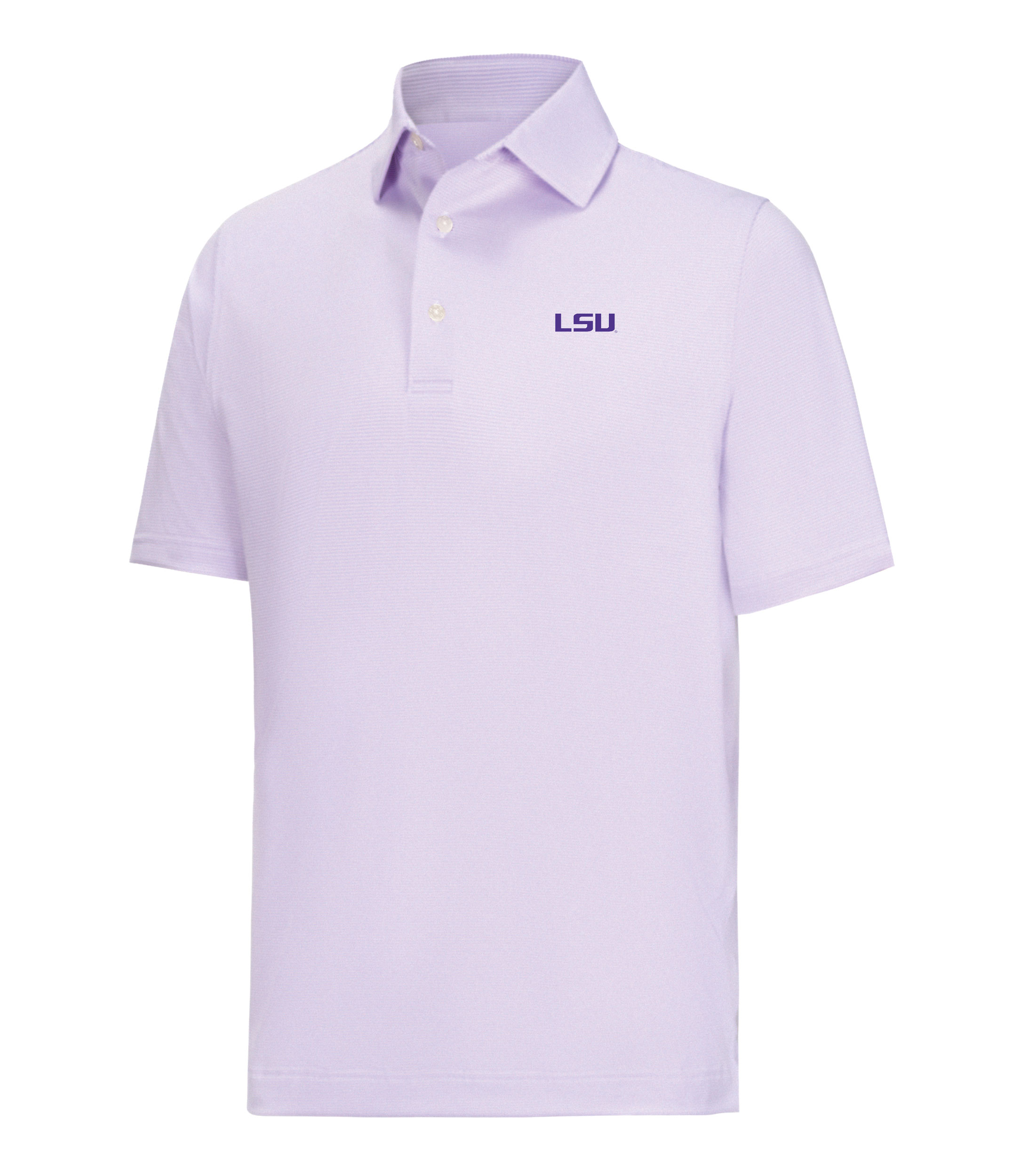 FootJoy MicroFeeder Performance Golf Shirts are constructed with 88% Polyester, 12% Elastane, a microfeeder stripe design, a 3-button placket and embroidered with the Louisiana State University logo.
