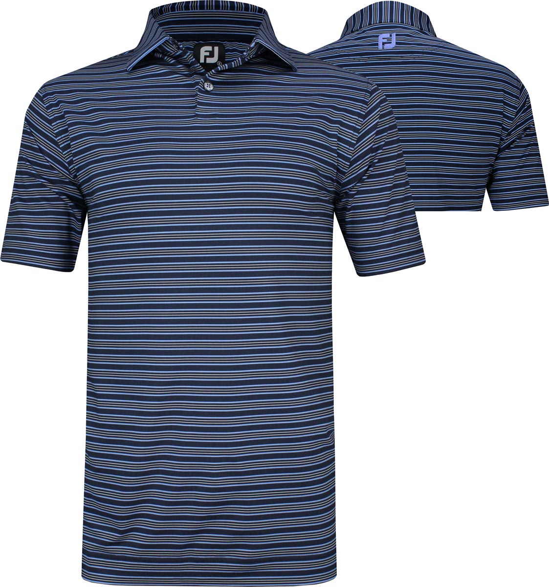 FootJoy ProDry Lisle Modern Classic Stripe Golf Shirts - FJ Tour Logo Available - Navy with light blue and white stripes