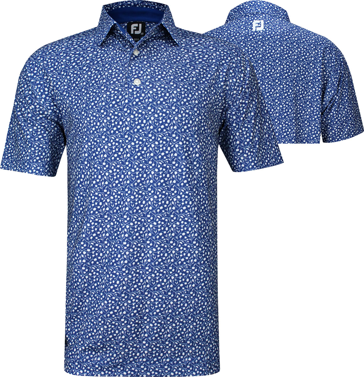 FootJoy ProDry Lisle Tossed Tulips Golf Shirts are designed with a 3-button placket, floral print, and a self collar.