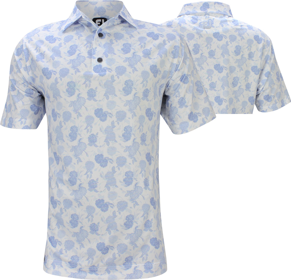 FootJoy ProDry Lisle Vintage Floral Print Golf Shirts are designed with a 3-button placket, floral print, and a self collar.