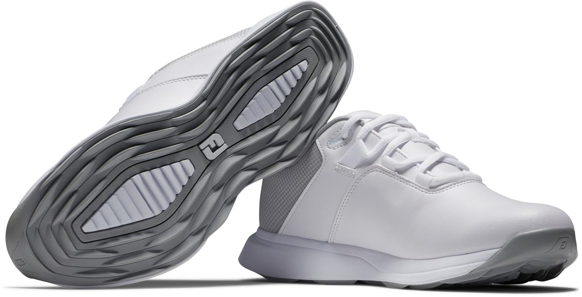FootJoy Prolite Women's Spikeless Golf Shoes - ON SALE - White synthetic uppers with grey accents and grey outsole