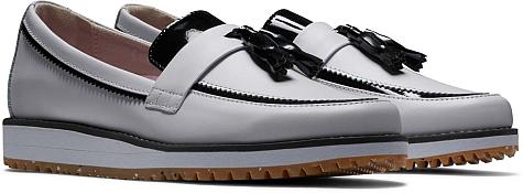 FootJoy Sandy Women's Spikeless Golf Shoes - Closeout - White smooth leather with black patent accents and black welt