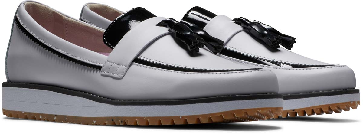 FootJoy Sandy Women's Spikeless Golf Shoes feature stylish patent leather with a tassel accent for a timeless look that works on the town, and on the green, thanks to the DuraMax Rubber soles.