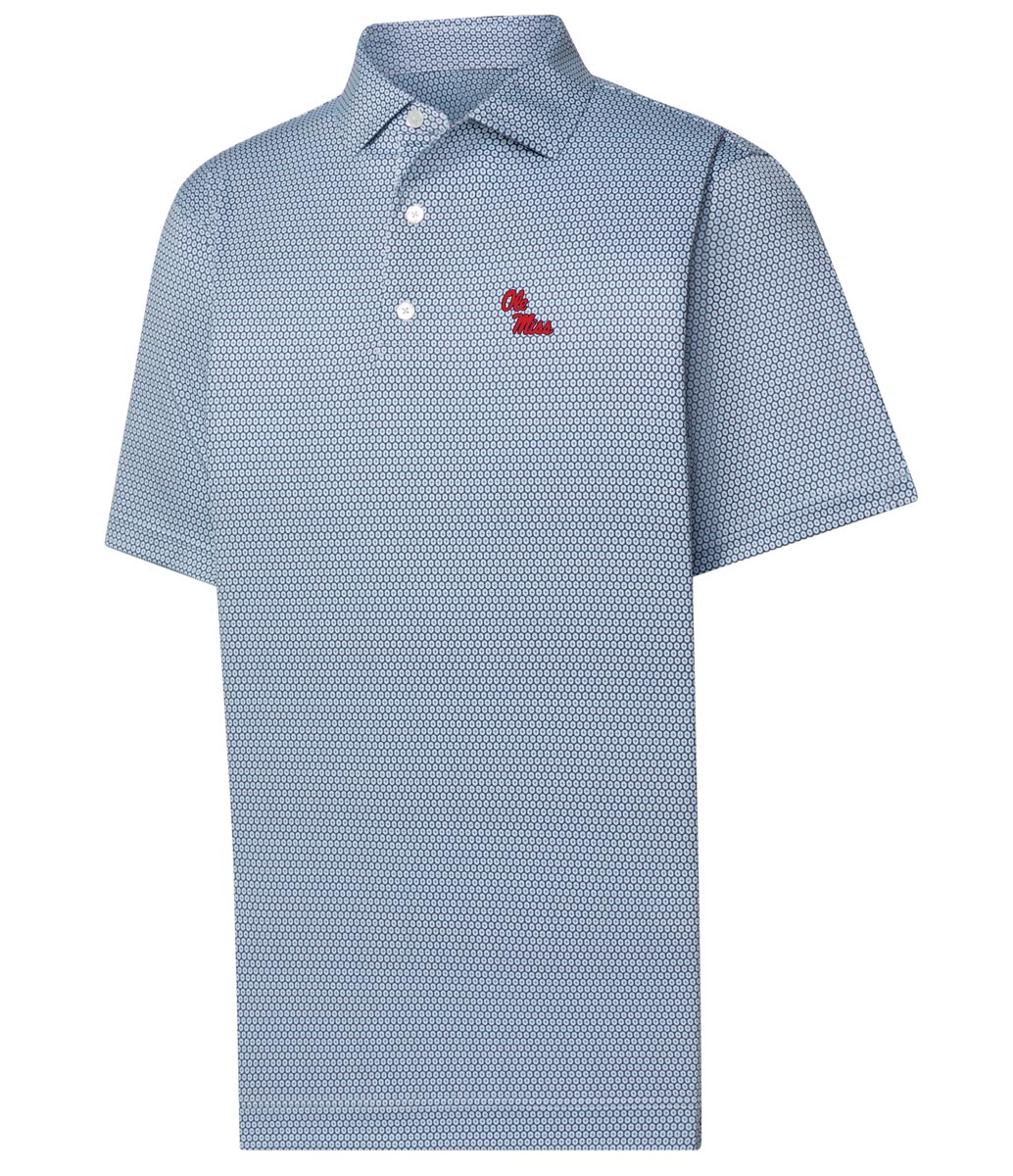 FootJoy Solid Performance Golf Shirts are constructed with 88% Polyester, 12% Spandex, a 3-button placket and embroidered with the University of Mississippi Logo.