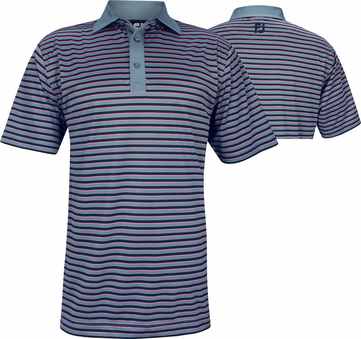 About FootJoy Super Stretch Baby Pique Multi Stripe Self Collar Golf Shirts - Slate - FJ Tour Logo Available - Previous Season Style