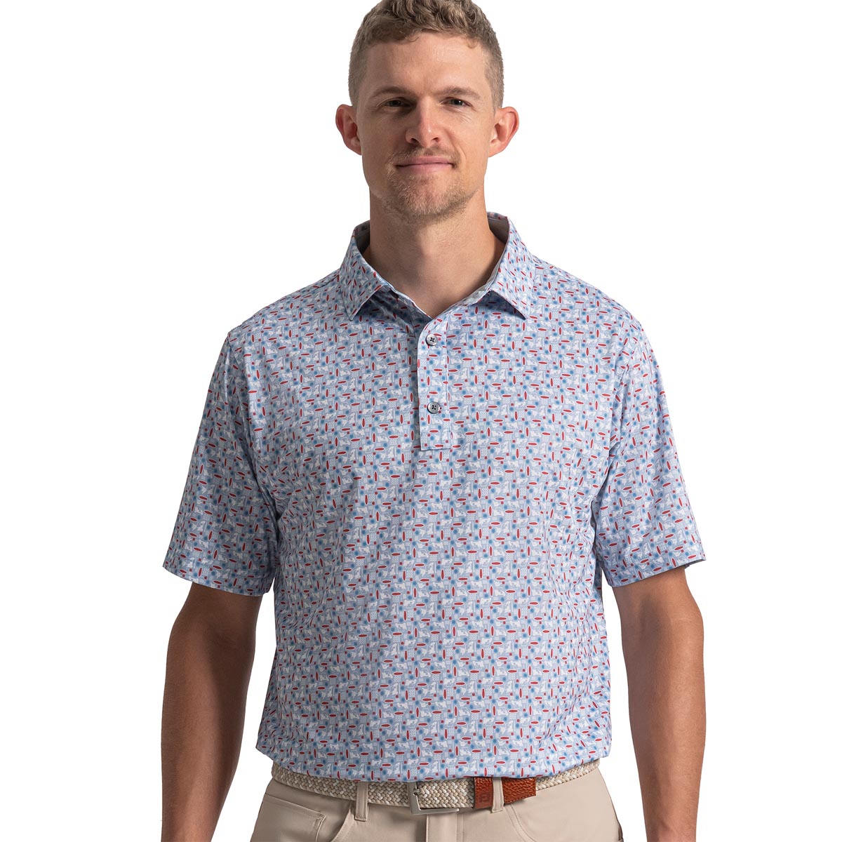 FootJoy Surfs Up Print Lisle Golf Shirts - White with chambray nantucket red and coastal blue