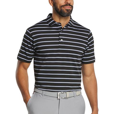 These FootJoy golf shirts are designed with a 3-button placket, a classic stripe print, and a self collar.