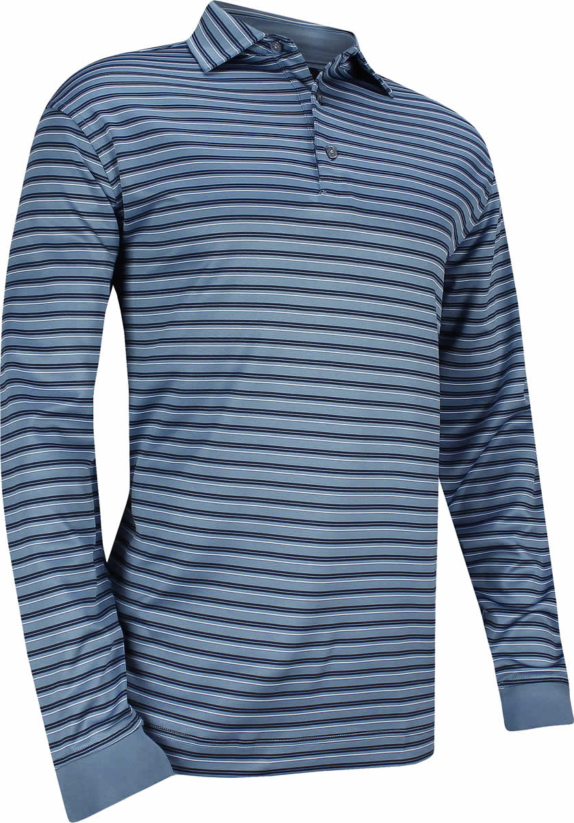 Thermolite Multi Stripe Long Sleeve Golf Shirts - Slate - FJ Tour Logo Available