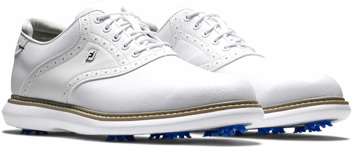 FootJoy Traditions Saddle Golf Shoes - White smooth leather with white smooth saddle, natural welt and white sole