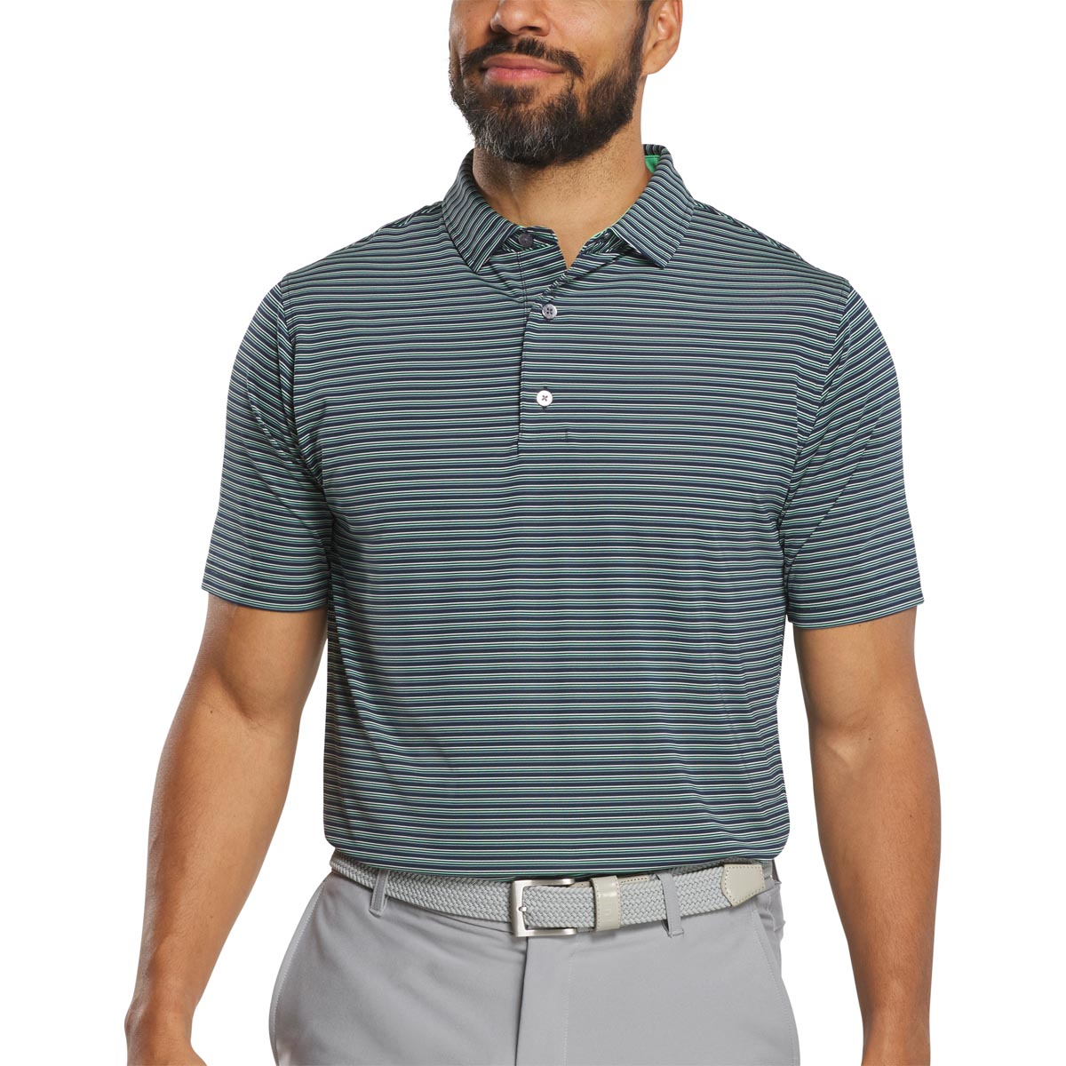 These FootJoy golf shirts are designed with a 3-button placket, thin stripes, and a self collar.