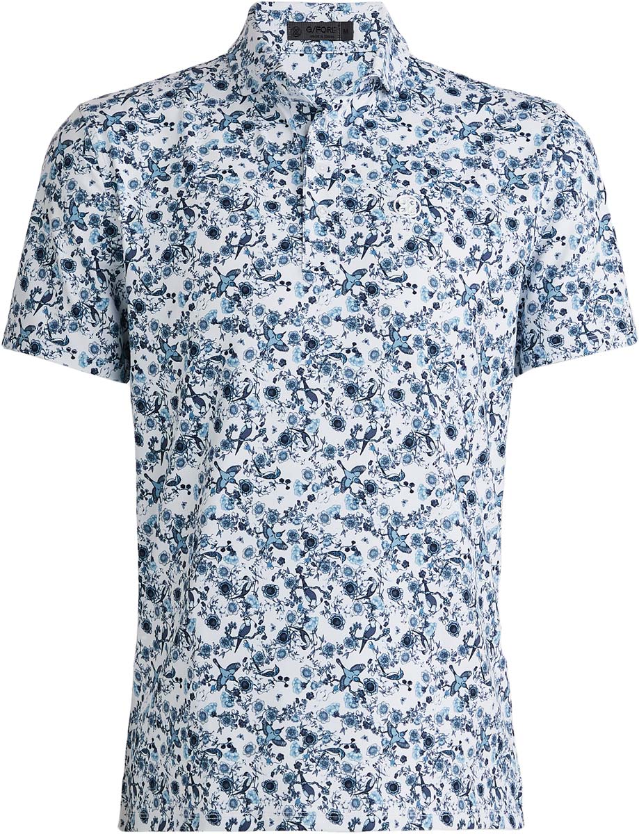 G/Fore Botanic Garden Tech Jersey Golf Shirts - ON SALE - White with ink blue floral print