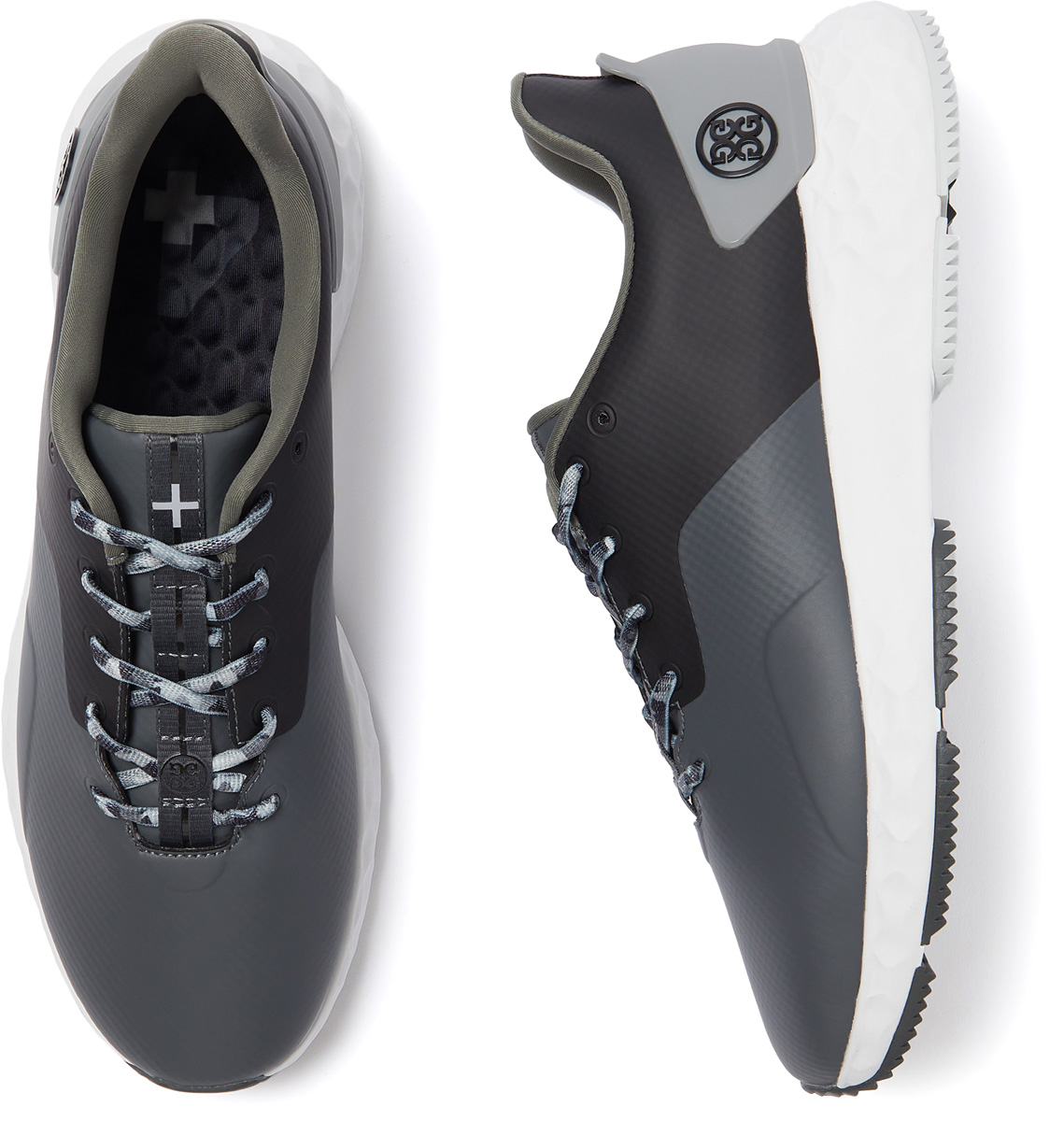 G/Fore MG4+ Spikeless Golf Shoes feature a 3D molded external heel for added lateral support while a premium waterproof upper provides extra reinforcement.