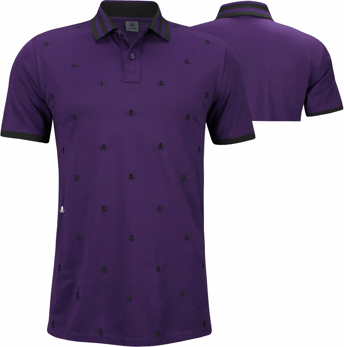 G/Fore Skull & T's Embroidered Golf Shirts - ON SALE - Wisteria with black skulls and t's print