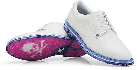 G/Fore Camo Gallivanter Spikeless Golf Shoes - HOLIDAY SPECIAL - White with sardinia green welt, camo green sole, and light blue bottom sole