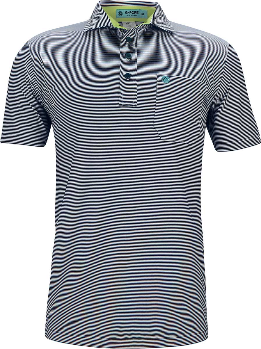 G/Fore Feeder Stripe Golf Shirts are constructed with 92% Polyester and 8% Spandex, a 4-button placket, and the G/Fore logo on the left chest pocket for unbeatable golf style.