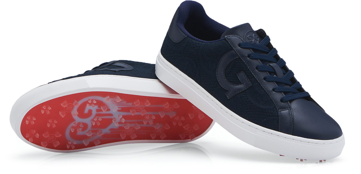 G/Fore Quarter G Knit Disruptor Women's Spikeless Golf Shoes - Twilight navy with white sole and red bottom sole