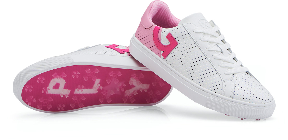 G/Fore Two Tone Perforated Disruptor Women's Spikeless Golf Shoes feature a colorful G/Fore cleat design and perforated uppers for breathable style.