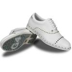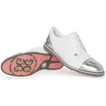G/Fore Stud Cap Women's Spikeless Golf Shoes are designed with diamond rubber studs on the toe cap, white patent full grain leather and a lightweight sole coupled with a bespoke cleat design.