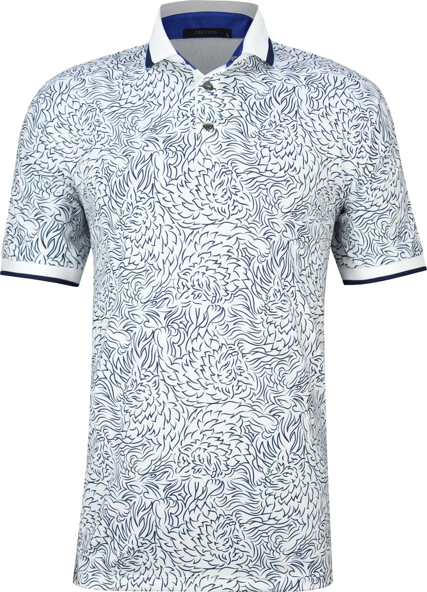 Greyson Clothiers Den Of Thieves Golf Shirts feature stylish print with signature, superior performance technologies such as moisture-wicking, antimicrobial finish, and high-stretch properties.
