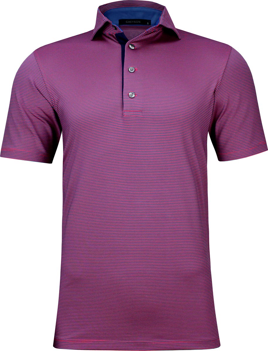 Greyson Clothiers Saranac Golf Shirts are constructed with 90% Polyester, 10% Spandex, 4-button placket, self collar, and striped design.