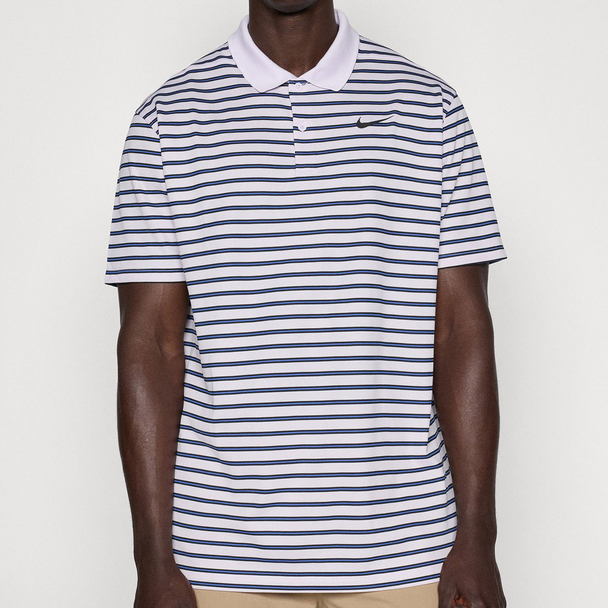 Nike Dri-FIT Victory Stripe Left Chest Logo Golf Shirts - Barely grape with black stripes