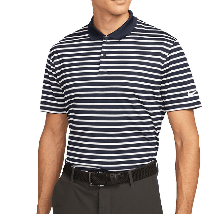 Nike Dri-FIT Victory Stripe Left Sleeve Logo Golf Shirts - ON SALE - College navy with white stripes