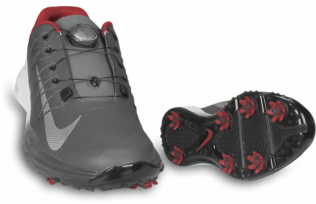 These Nike golf shoes are designed with Lunarlon cushioning that offers lightweight comfort, optimal ground-feel and all-day support on the golf course, while the dynamic Flywire technology increases lateral stability and foot support.