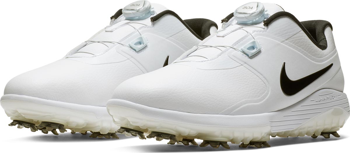 Nike Vapor Pro BOA golf shoes feature Nike's most advanced BOA Closure System with an incremental pull & push structure conveniently located on the top center tongue, for more customizable micro-adjustability.