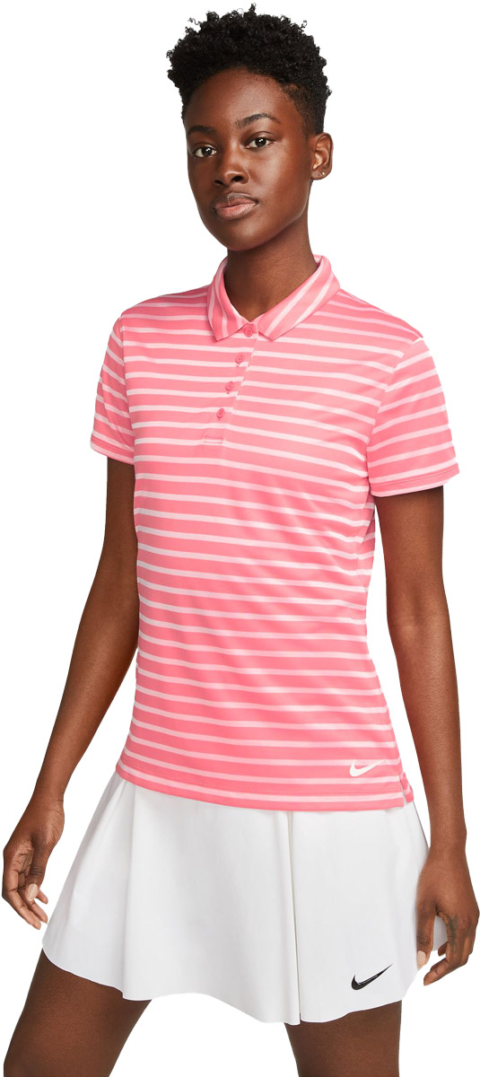 Nike Women's Dri-FIT Victory Stripe Golf Shirts feature lightweight, breathable fabric with superior moisture-wicking technology to keep you cool and comfortable.