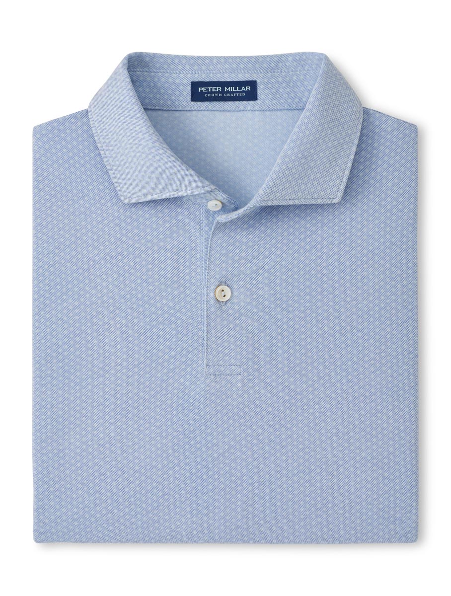 Peter Millar Albatross Diamond Cotton-Blend Pique Golf Shirts are crafted with an Oxford pique knit, mother-of-pearl buttons, 2-button placket, a subtle diamond design, 62% Pima Cotton, 32% Polyester and 6% Spandex.