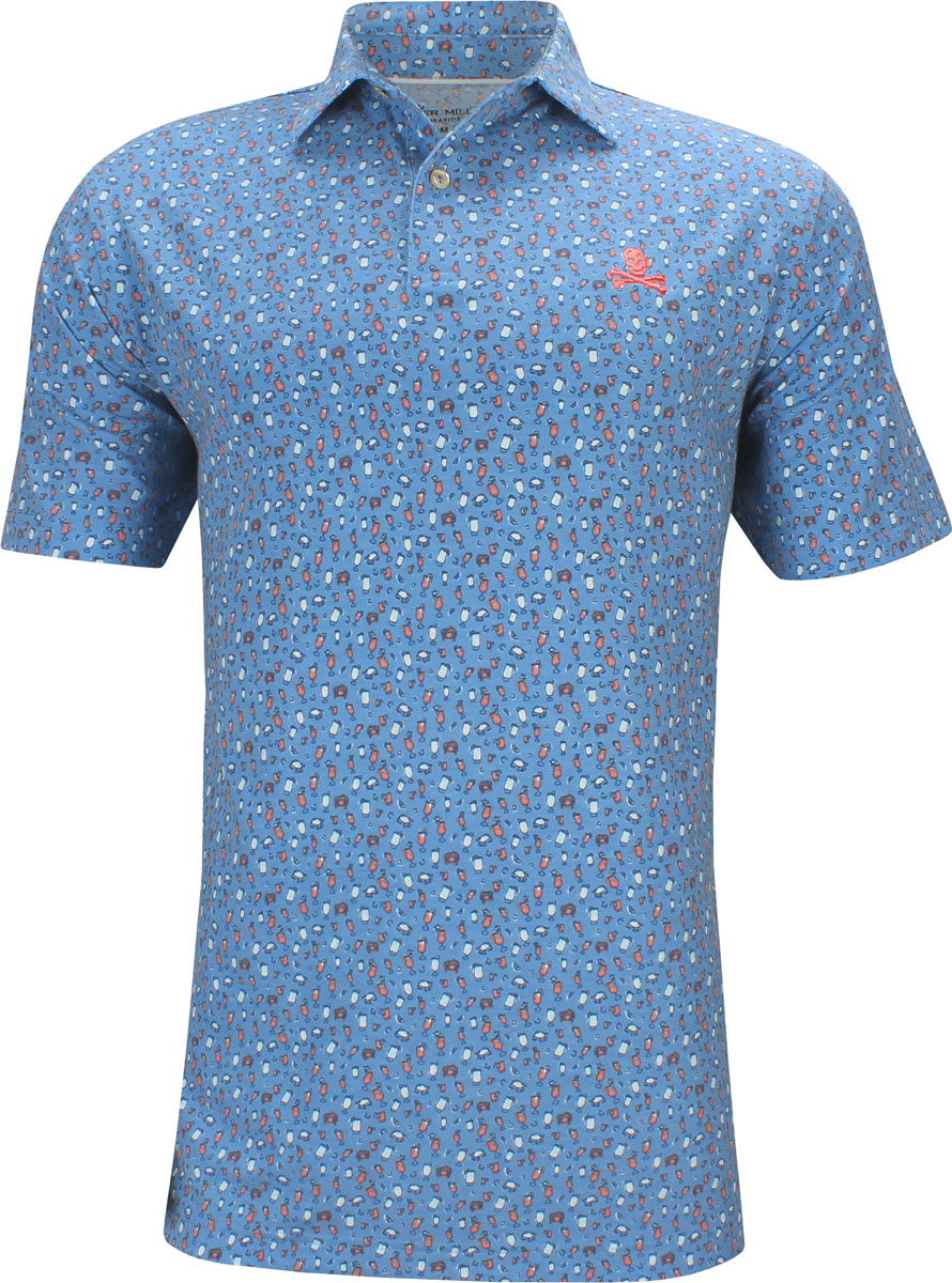 Peter Millar Dri-Release Natural Touch Cocktails & Claws Golf Shirts - LE Skull Logo - Coast blue with novelty print and skull logo