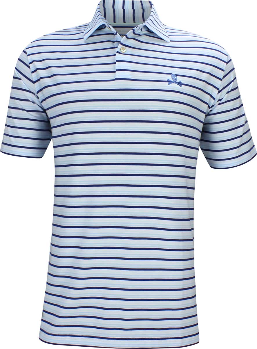 Peter Millar Dri-Release Natural Touch Multi Stripe Golf Shirts - LE Skull Logo - Light blue with dark blue stripes and skull logo