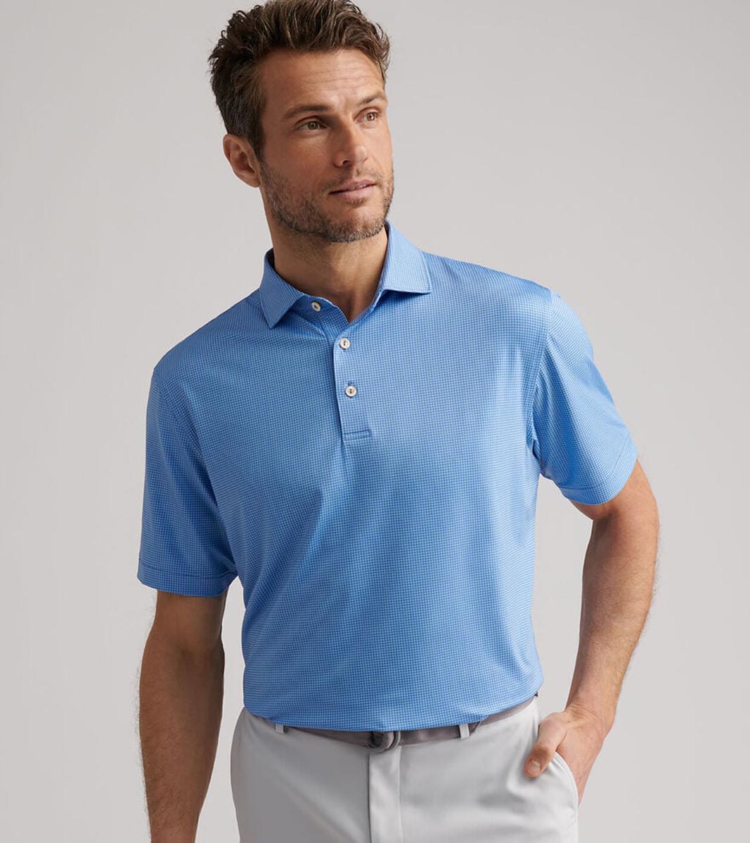 Peter Millar Gingham Performance Jersey Golf shirts are crafted with summer comfort fabrication and are gold standards for softness and exceptional performance for when you are working on your swing.