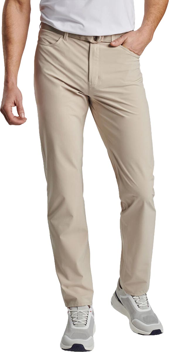 Peter Millar Laddie Golf Rain Pants are designed as a modern alternative to pull on rain pants that can wear just like everyday pants, so you can keep your signature style even when rainy conditions are certain.
