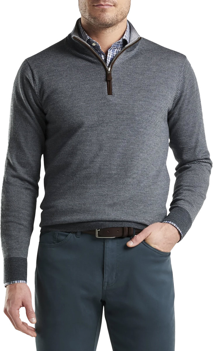 Peter Millar Needle-Stripe Quarter-Zip Golf Sweaters - Charcoal with subtle grey stripes