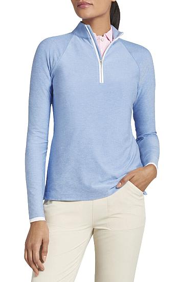 These Peter Millar women's golf pullovers are finished with a mock collar and a quarter-zip closure with contrast piping.