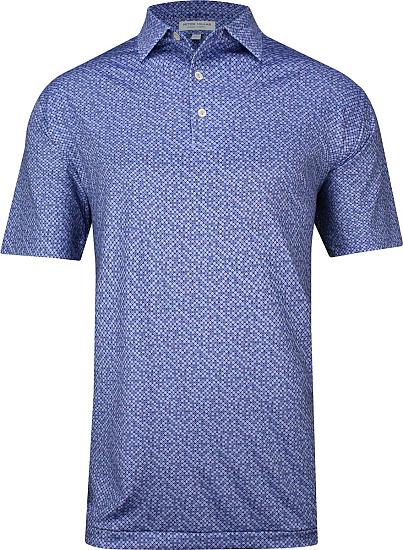 Peter Millar Sterling Performance Jersey Golf Shirts are constructed with 92% Polyester, 8% Spandex, self collar, three-button placket, and a subtle novelty print.