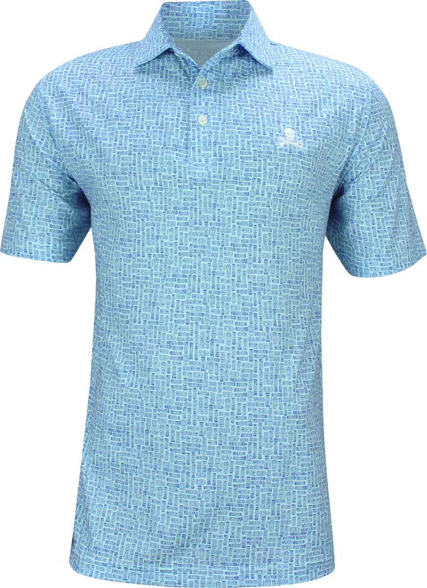 Peter Millar Tropical Tikis Aqua Cotton Golf Shirts are constructed with 100% Pima Cotton, a 3-button placket, and a self collar.